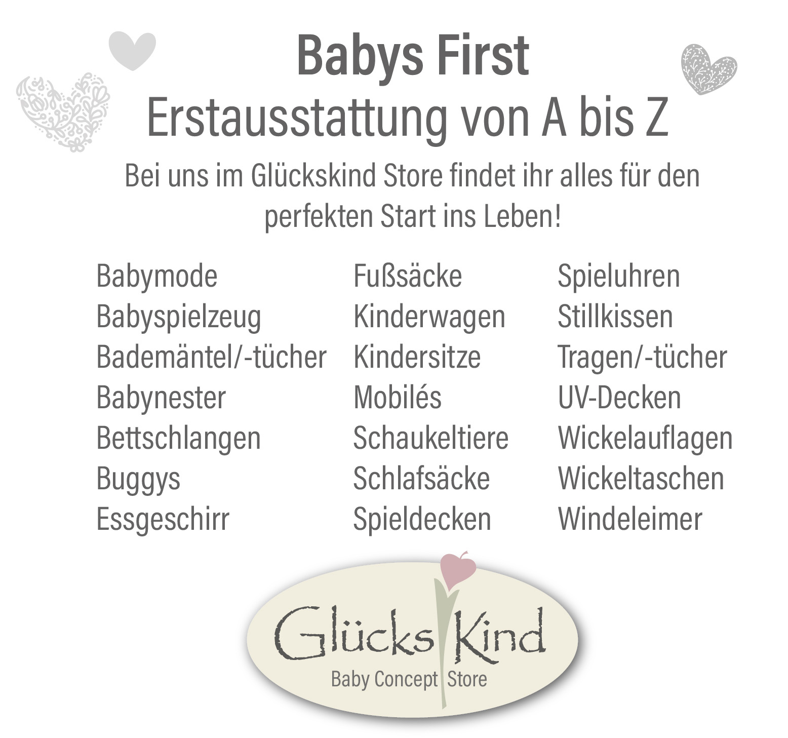 uns findest du vom Holzspielzeug über Mobiles und Spieluhren, Essgeschirr, Schlafsäcke, Schnuller, Bettwäsche